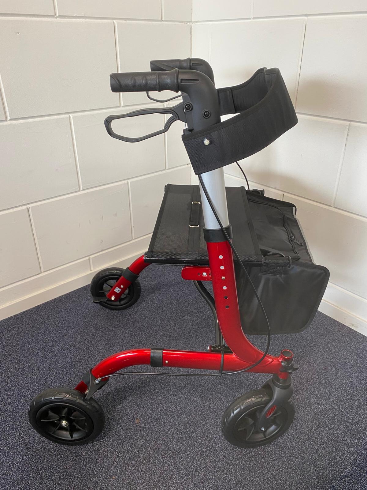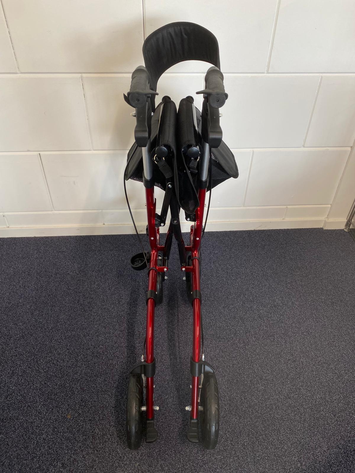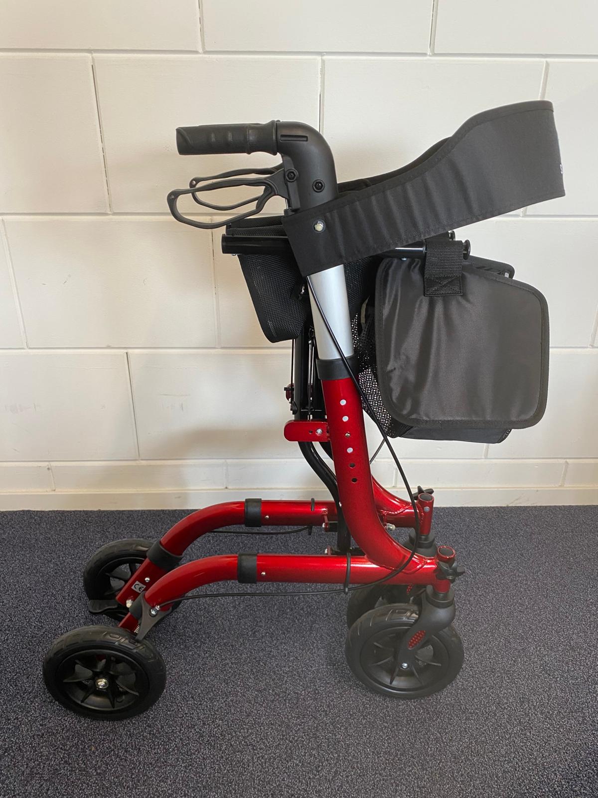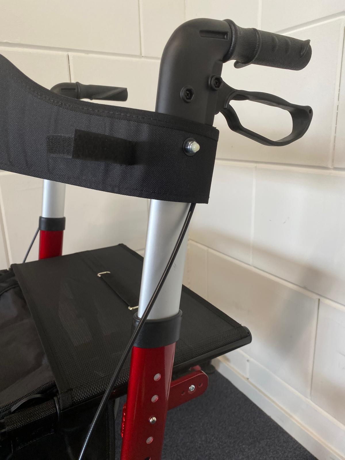 Parkeer de rollator eenvoudig door de rem omlaag te duwen, Doordat de rollator lichtgewicht en opvouwbaar is kun je deze makkelijk opbergen of meenemen. De wandelstokhouder en handige boodschappentas maken de rollator helemaal af!