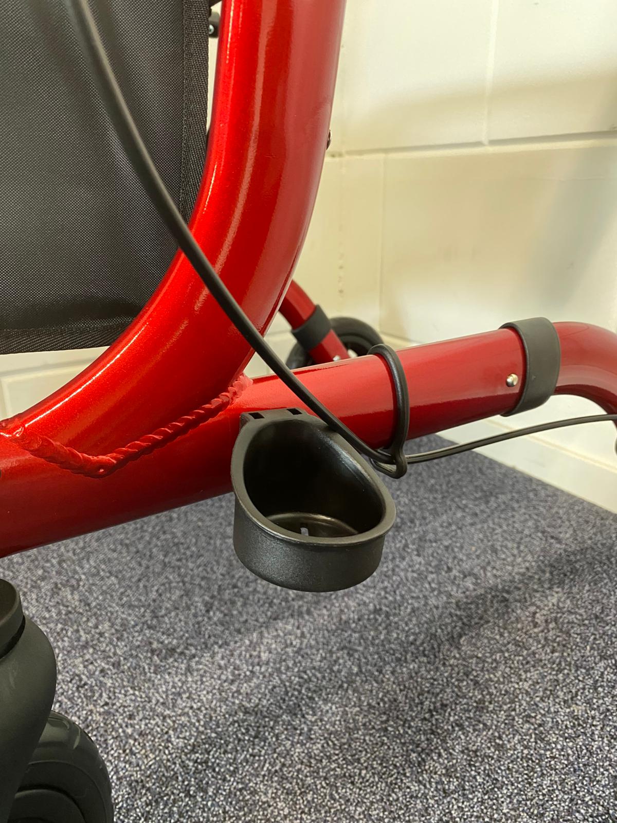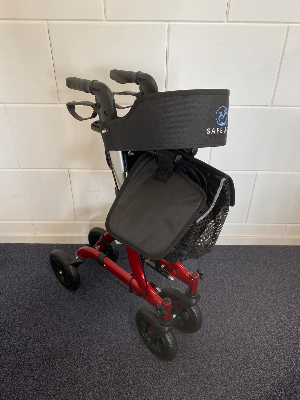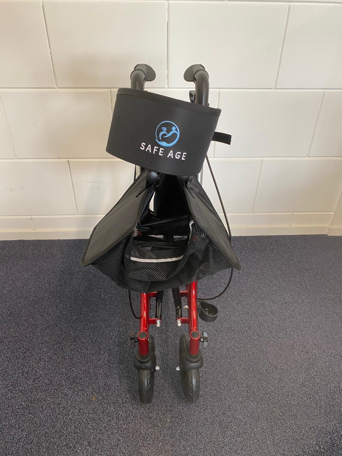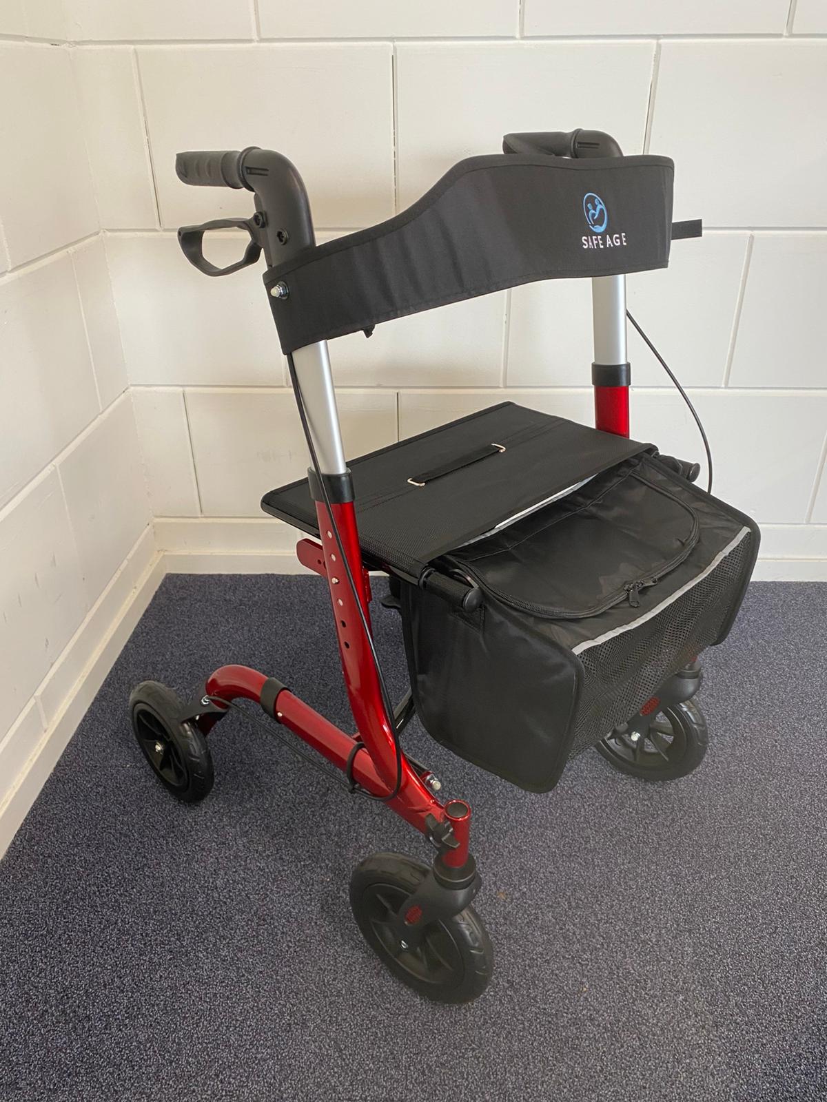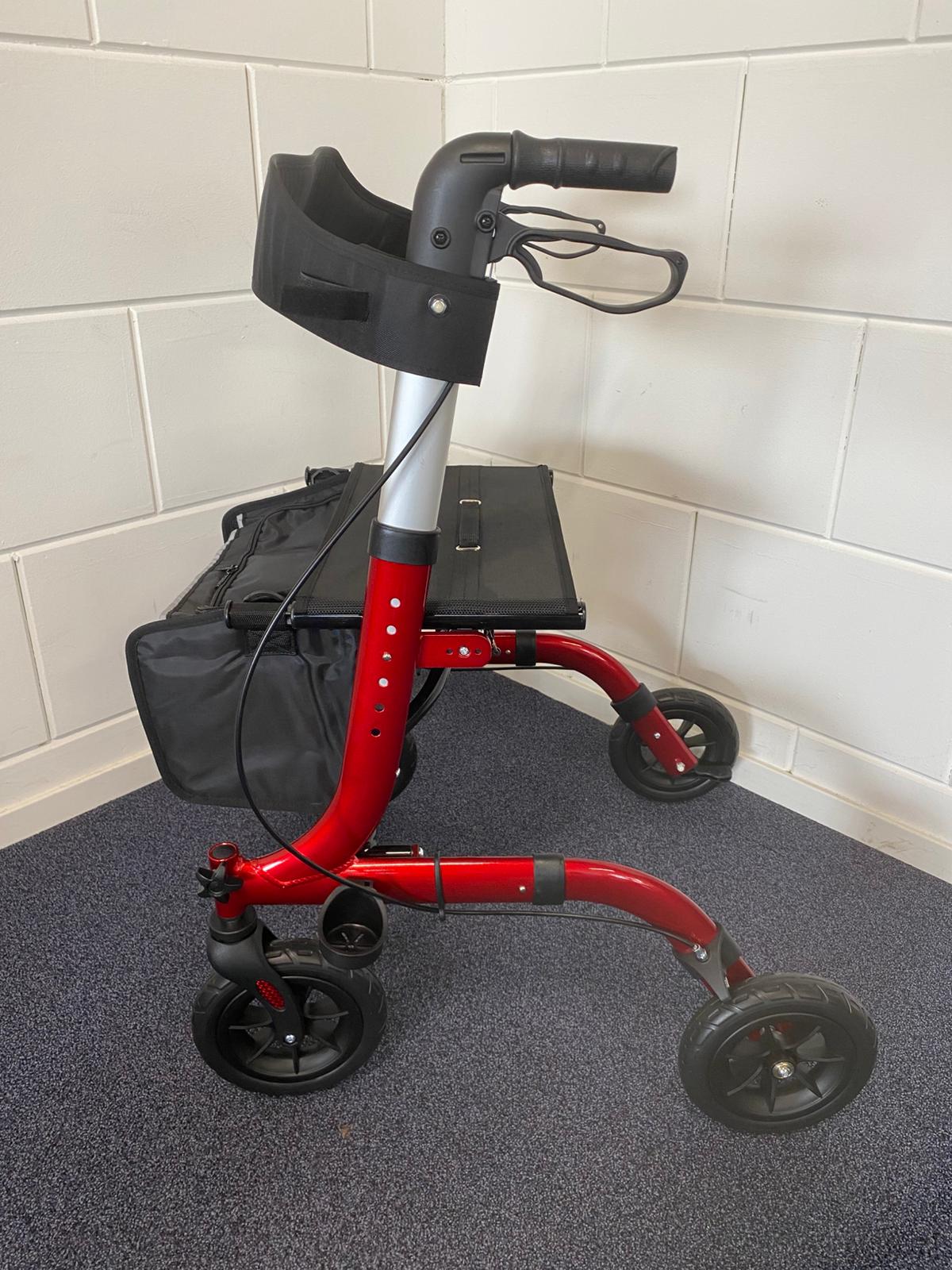 Parkeer de rollator eenvoudig door de rem omlaag te duwen, Doordat de rollator lichtgewicht en opvouwbaar is kun je deze makkelijk opbergen of meenemen. De wandelstokhouder en handige boodschappentas maken de rollator helemaal af!
